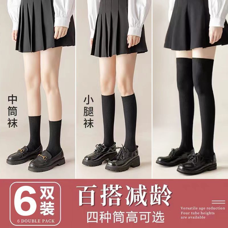 جوارب سوداء JK بأرجل صغيرة للأطفال للربيع والخريف، جوارب لوليتا مكدسة، جوارب عصرية، جوارب Cyber Celebrity متوسطة الأنبوب فوق الركبة