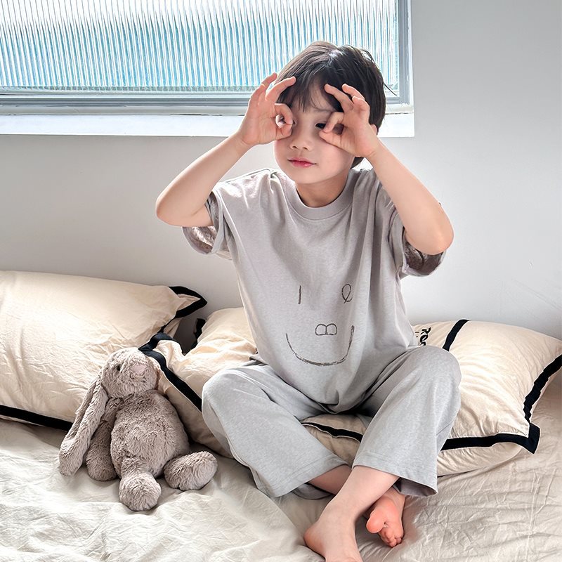 بيجامات صيفية للأطفال ملابس منزلية للأولاد بدلة أطفال صيفية رقيقة نصف كم ملابس للأولاد الصغار ملابس فضفاضة للأطفال