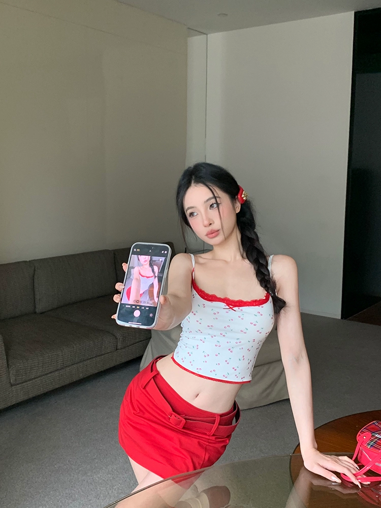 الدانتيل الكرزي ذو المقاس النحيف للفتيات الجميلات ذو لون متباين من الدانتيل الخارجي