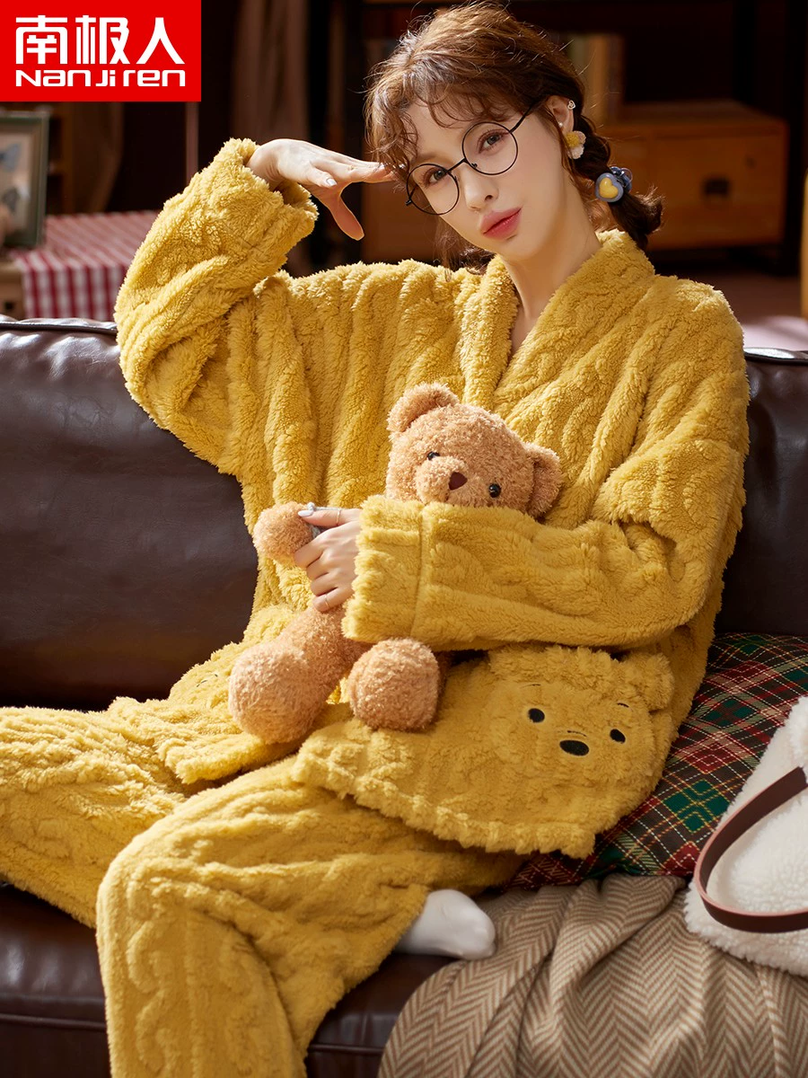 Coral velvet pajamas autumn and winter women’s thickened 2024 new cute flannel warm suit clothes
