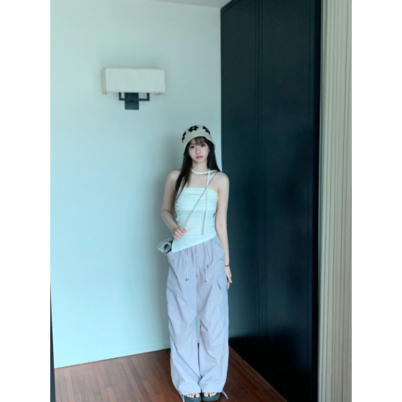 سترة جديدة بدون حمالات على طراز الرغبة النقية الجديدة + وزرة فضفاضة مستقيمة من الشارع