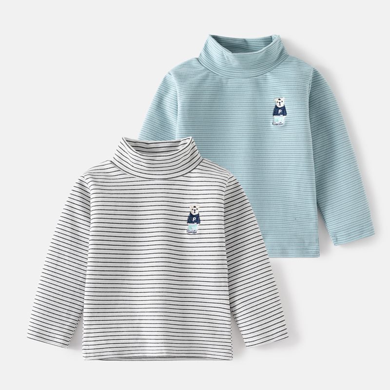 الأطفال ذوي الياقة العالية قاعدة قميص 2024 الربيع والشتاء ملابس الأطفال الكلاسيكية مخطط نصف ذوي الياقات العالية الخريف ملابس الطفل الرجال طويلة الأكمام البلوز