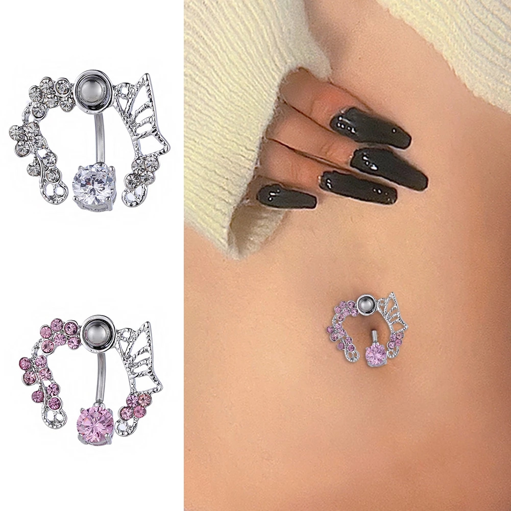 قضيب من الفولاذ المقاوم للصدأ ثنائي الغرض مسمار السرة الماسي حلي السرة الأوروبية والأمريكية عبر الحدود للبيع بالجملة خاتم السرة على شكل فراشة مجوفة