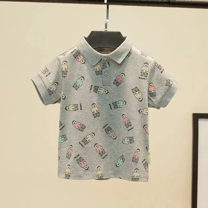 القطن الأطفال الفتيان والفتيات الأطفال 2024 صيف جديد الكرتون المطبوعة تنفس التجفيف السريع التلبيب بولو قصيرة الأكمام