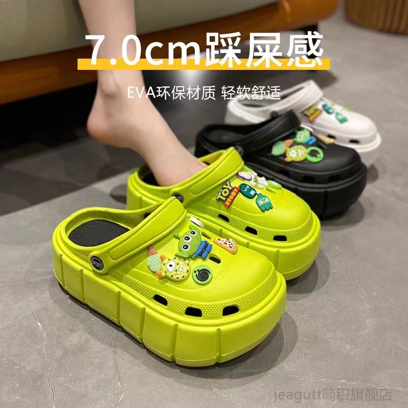 أحذية نسائية بفتحات ذات نعل سميك من الكرتون ذاتية الصنع للبيع بالجملة من المصنع بمقدمة مغلقة نصف دعم لباس خارجي من الكعك basguang صنادل لزيادة الارتفاع لمدة عام