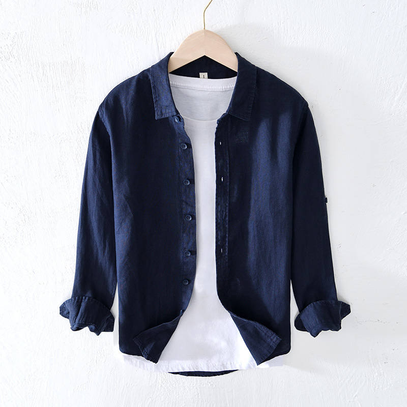 L610 الربيع والخريف جديد الكتان الخالص بلون قميص الرجال عارضة أزياء بسيطة قميص الرجال جيل من الشعر