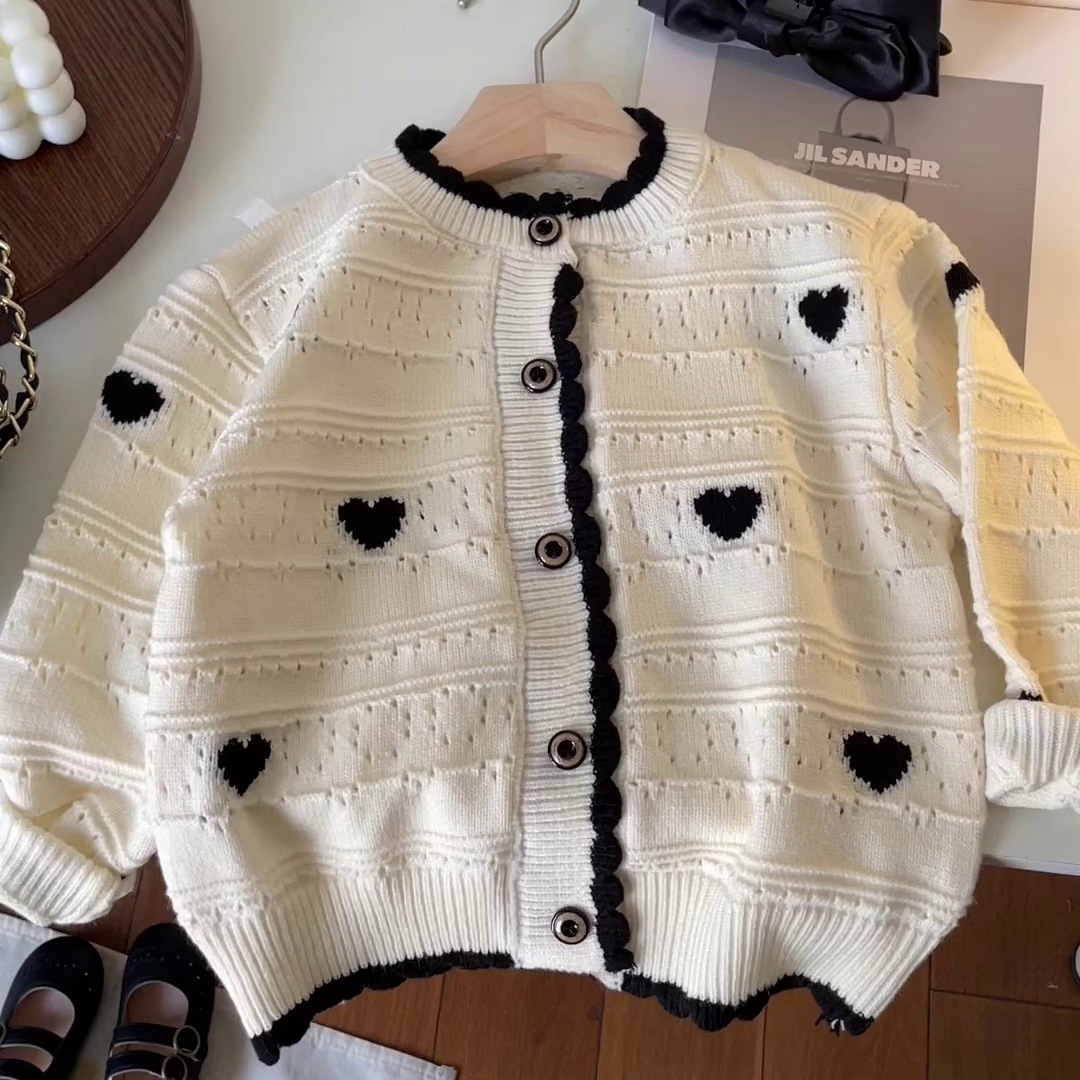 الكورية نمط الفتيات سترة سترة 2023 ربيع جديد الحب محبوك سترة بأكمام طويلة النمط الغربي للأطفال طفل أعلى
