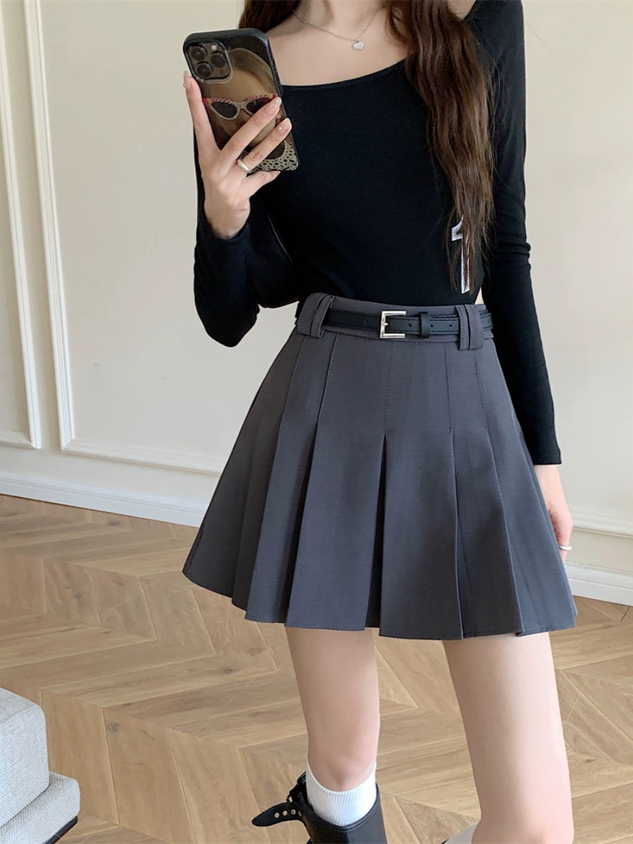 تنورة كاكي على شكل حرف A للخريف كاجوال بخصر عالٍ