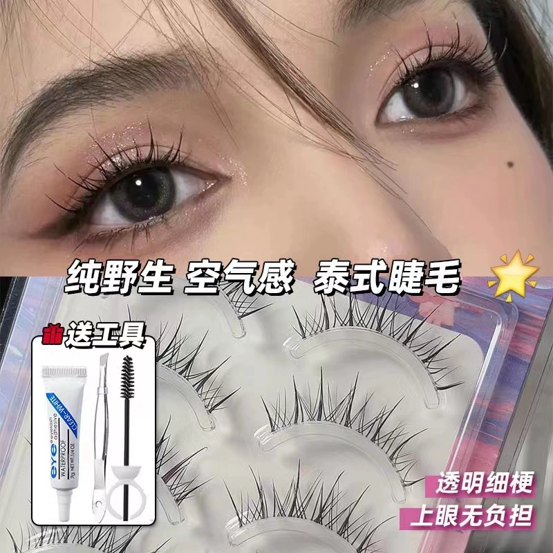 رموش صناعية خفيفة على الطراز التايلاندي للنساء، نمط طبيعي، محاكاة كسولة، شعر خيالي مبتدئ عاري الوجه كامل الطول.