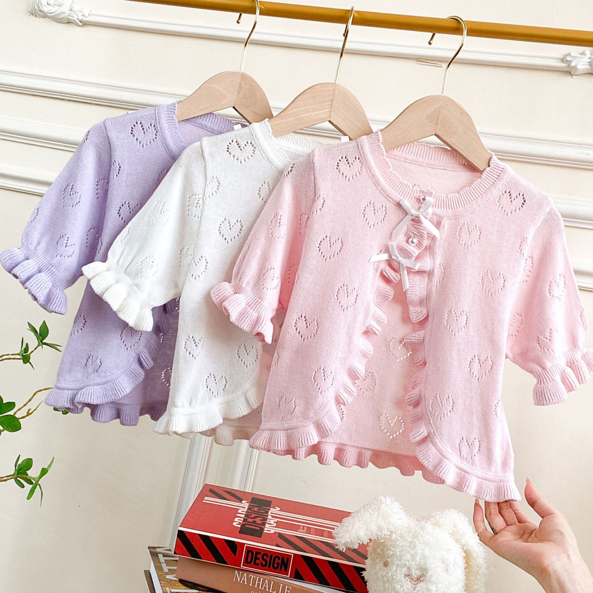 شال بناتي بأكمام قصيرة للصيف والخريف سترة محبوكة من الدانتيل المجوف 2023 عباءة رقيقة واقية من الشمس من القطن الخالص