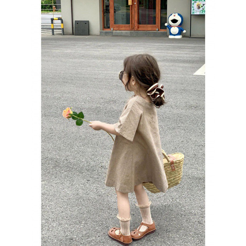 تنورة صيفية للبنات 2024 فستان أطفال بنمط جديد فستان فرنسي ريترو للربيع والصيف فستان قطني للأطفال