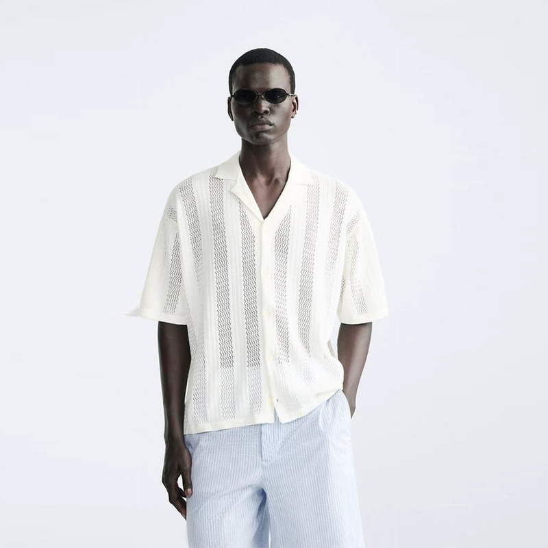 قميص محبوك مجوف ذو الياقة الكوبية المثقبة للرجال الجديد