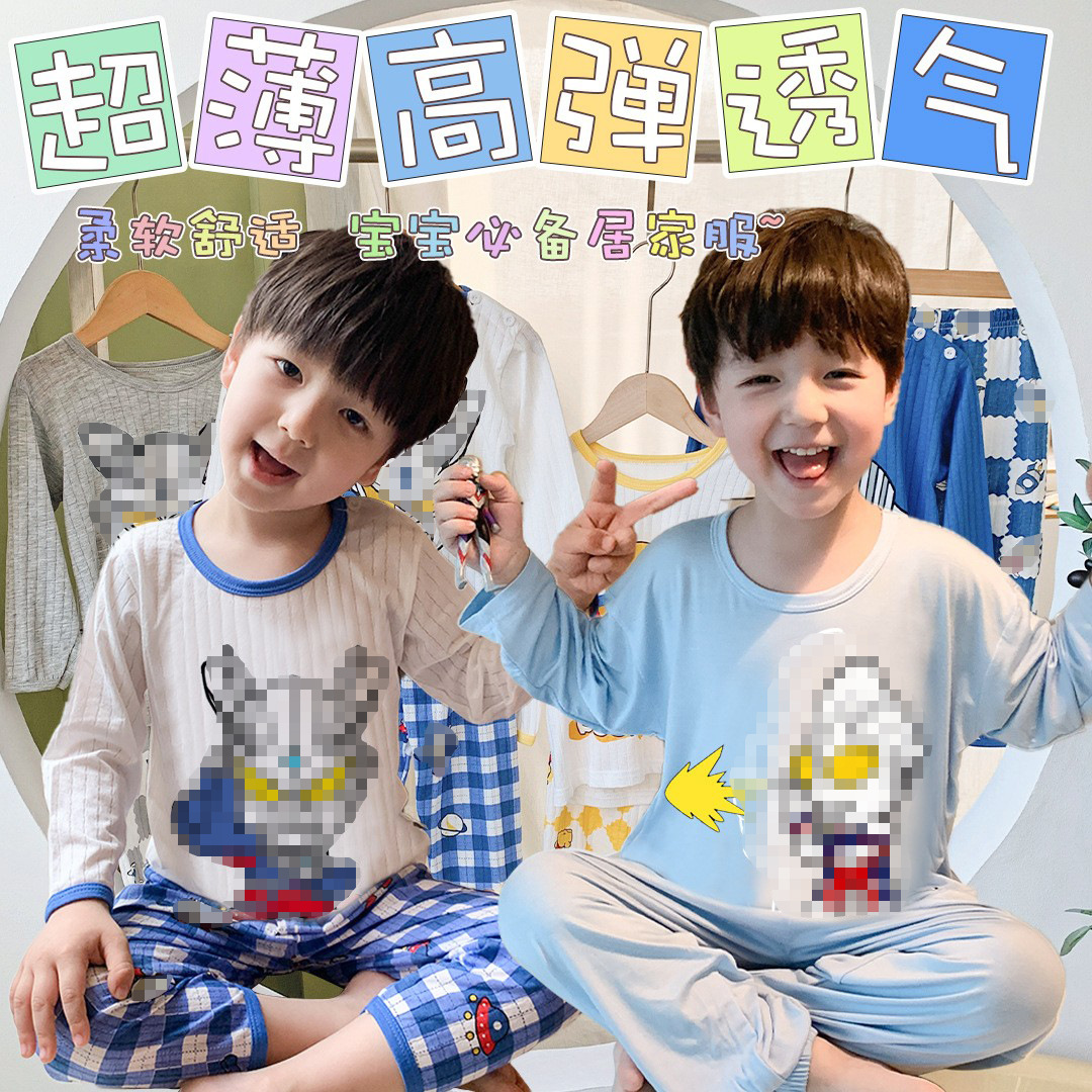 بيجامات للأولاد بيجامات أطفال صيفية رقيقة من القطن الخالص ملابس منزلية للأطفال تناسب ملابس تكييف الهواء للأطفال المتوسطة والكبيرة
