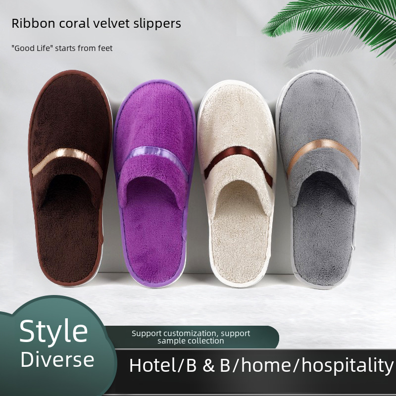 يمكن أن يكون المصنع توريد النعال المخملية الشريطية المرجانية القابلة للتصرف في فندق B & B Inn لصالون التجميل والضيافة المنزلية بالجملة