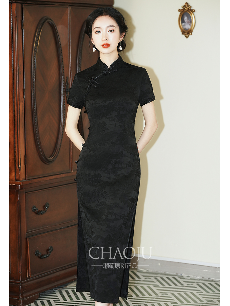 أسود شيونغسام المرأة النمط الصيني الجديد جميل تحسين جديد 2024 جديد الصيف الشباب حجم كبير ملابس يومية نبيلة