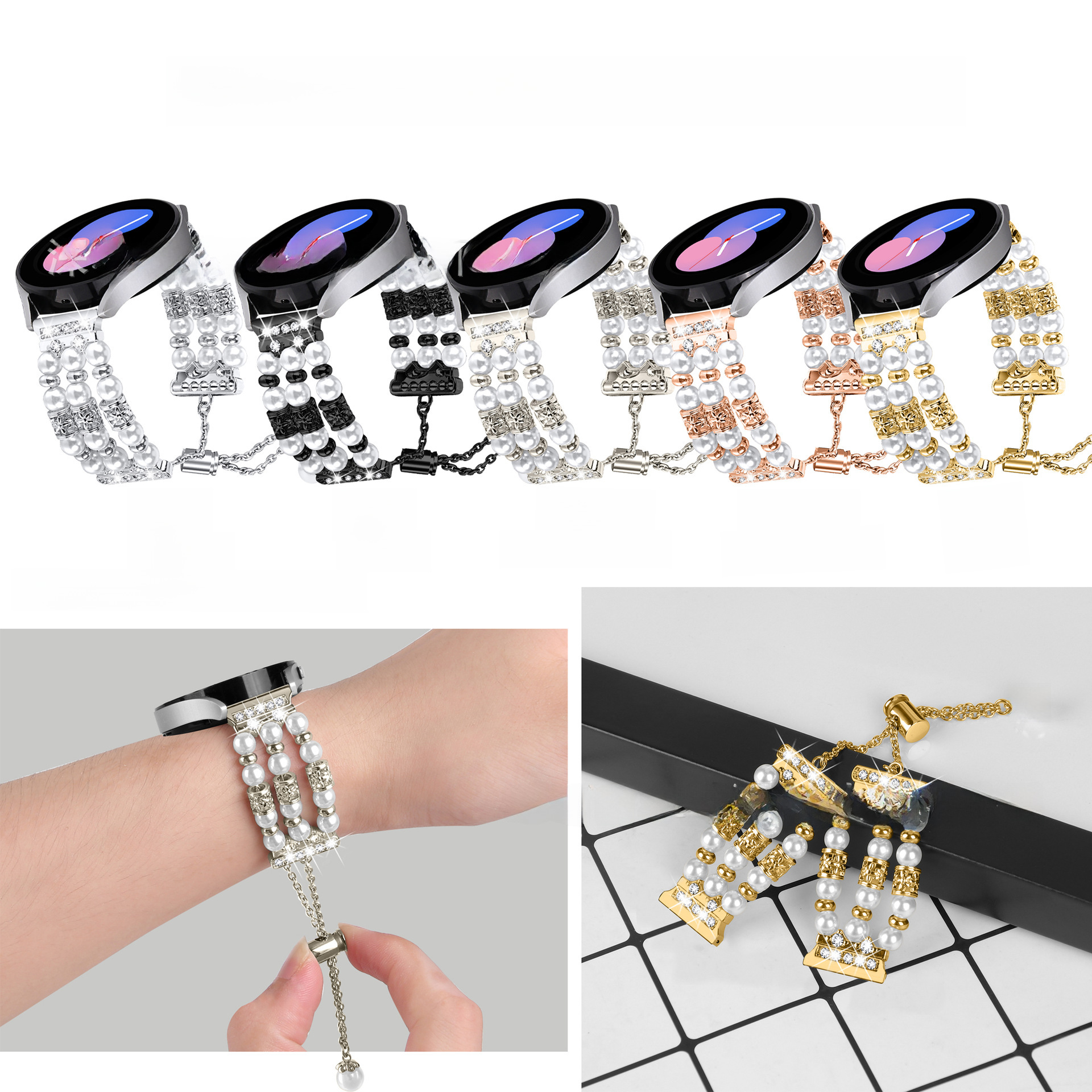 لساعة Samsung galaxy watch5 Watch4 Classic Chanel Pearl Diamond Strap