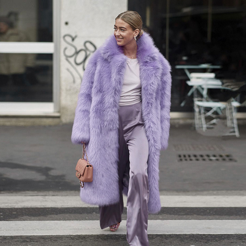 معطف شعر طويل موضة 2024 محب للشارع للخريف والشتاء معطف فرو سميك تقليد طية صدر السترة للنساء بسعر الجملة