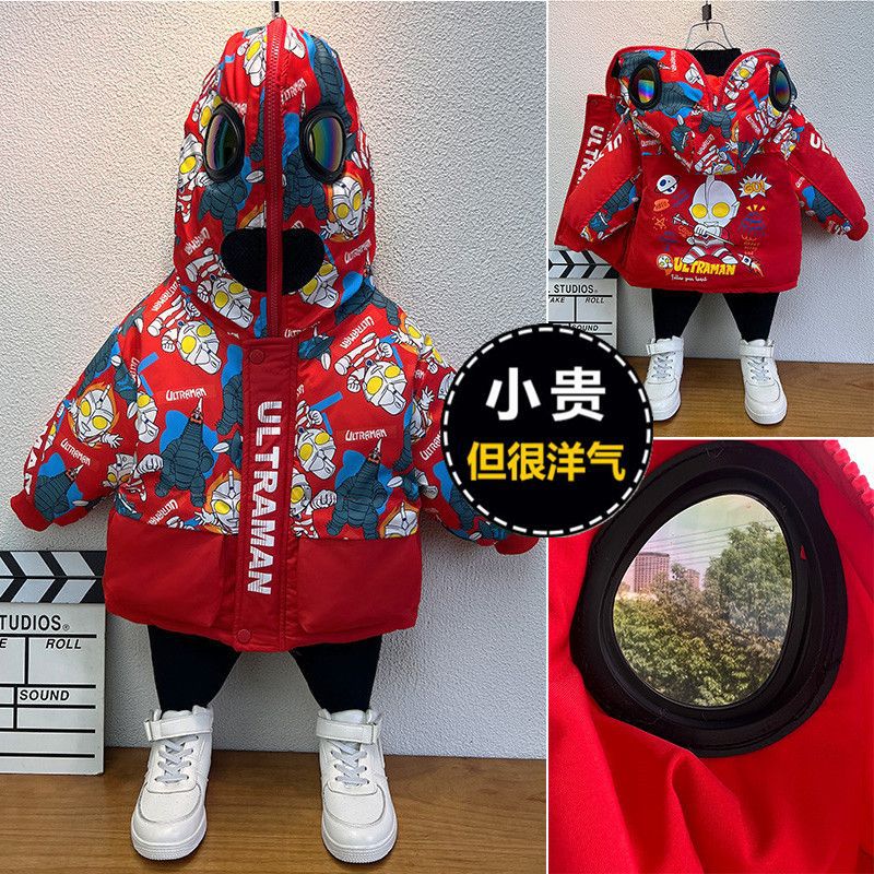 سترة مبطنة بالقطن للأطفال معطف مبطن بالقطن معطف Ultraman شتاء جديد على الطراز الغربي معطف شتوي سميك دافئ للأولاد والأطفال سترة مبطنة بالقطن
