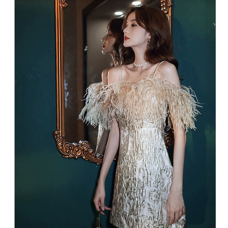 فستان سهرة حفلة عيد ميلاد حفلة الريش