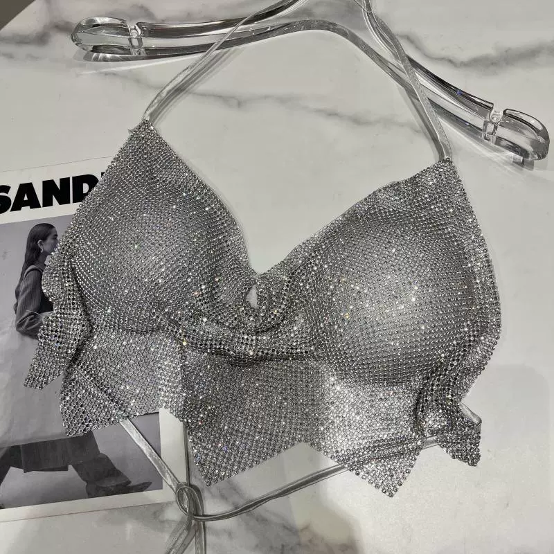 مشاهير الإنترنت 2024 الصيف المشاهير ملهى ليلي جديد مليء بسلاسل درع الحجر الراين ، ولامع الأداء الأداء القميص القميص.