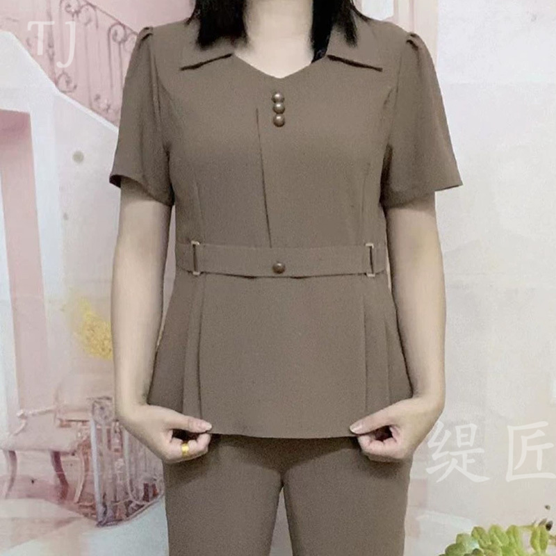 الصيف بدلة على الموضة أنيقة التخسيس قصيرة الأكمام السراويل قطعتين الحد من العمر كل مباراة النمط الغربي دعوى الأم