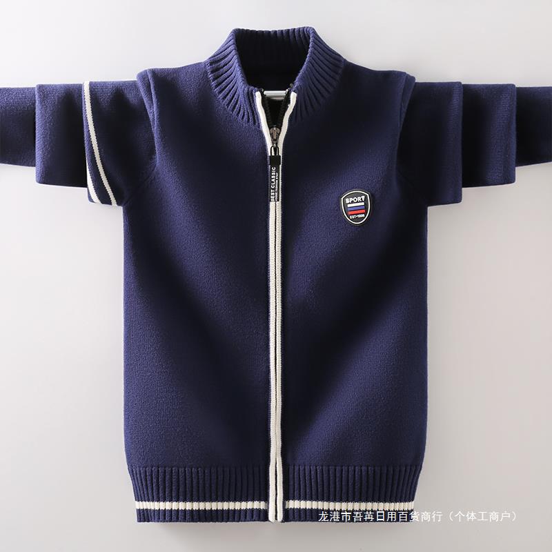 سترة صوفية محبوكة للأطفال مبطنة بالصوف سميكة للأولاد 2023 خريف وشتاء متوسط وكبير للأطفال بسحاب قميص معطف موضة الكلية