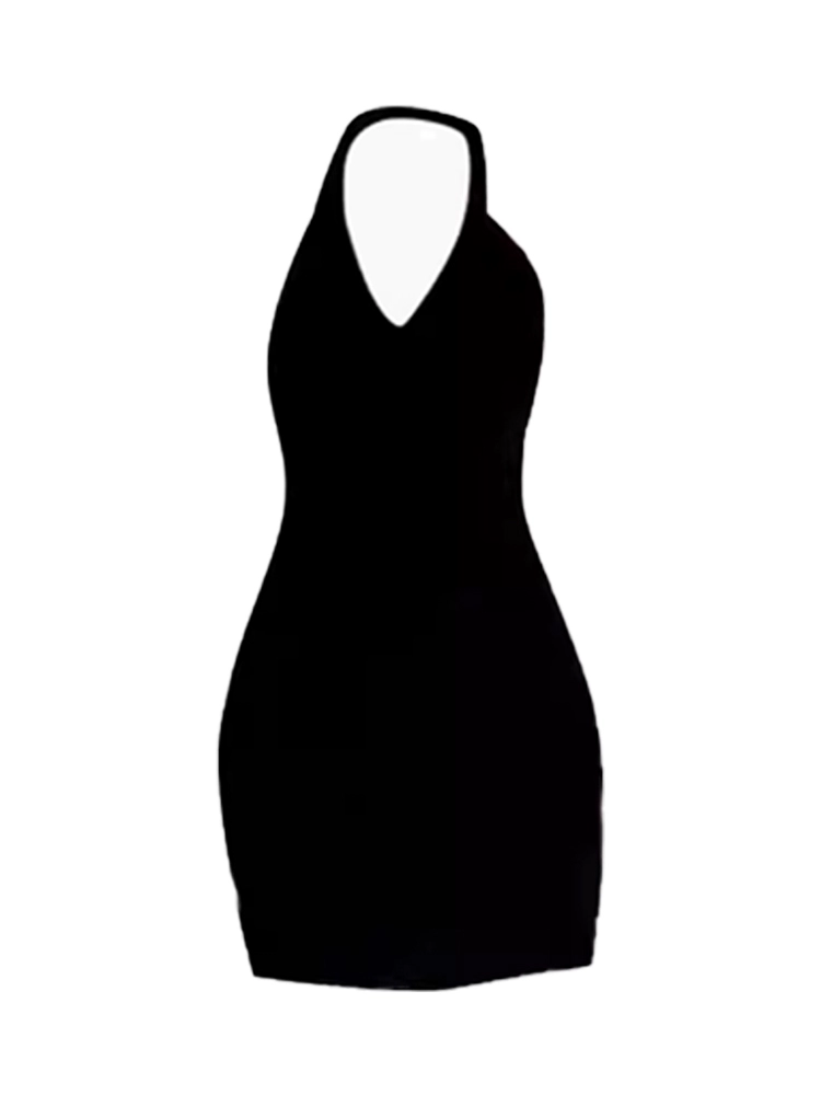 فستان هوتي فرنسي بحمالة عنق للنساء لصيف 2024 تنورة جديدة راقية باللون الأسود بدون خصر وظهر مكشوف على شكل حرف a