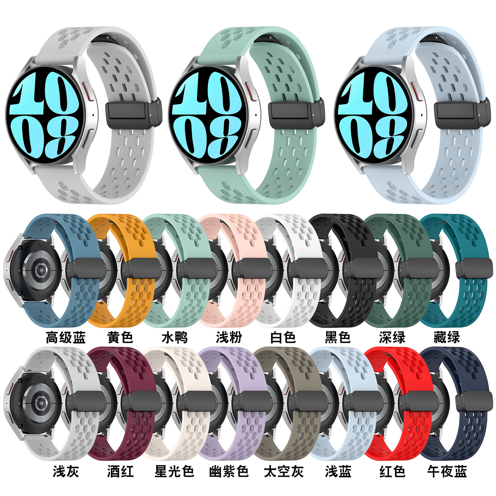 مناسب لساعة سامسونج، حزام معصم رياضي ذو 6 فتحات Watt4، رأس مسطح كلاسيكي قابل للطي وإبزيم رياضي