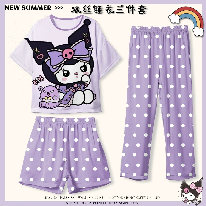 بنطلون فتيات بيجاماس للأطفال الربيع والصيف سراويل صغيرة الحرير قصيرة الأكمام