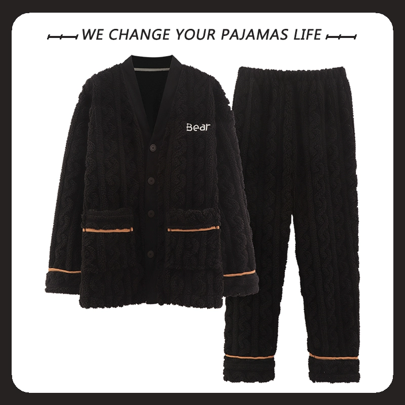 القطب الشمالي المخملية منامة الرجال الخريف والشتاء الشتاء المرجان المخملية سميكة زائد المخملية الفانيلا الكورية نمط ملابس المنزل مجموعة