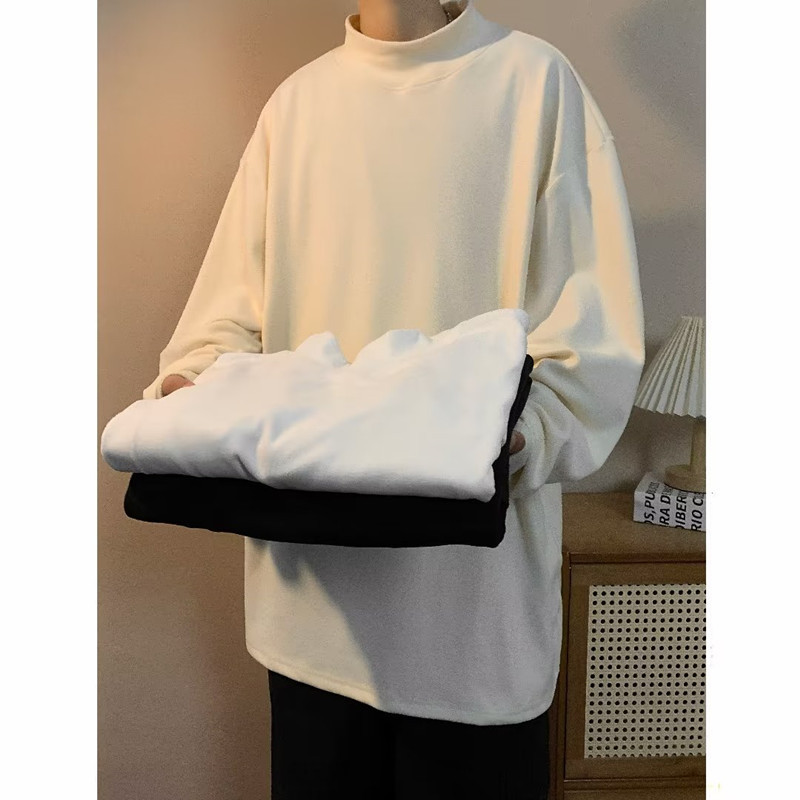 تي شيرت رجالي من De Velvet بنصف الياقة المدورة وأكمام طويلة سترة خريفية دافئة مبطنة بالصوف سميكة للخريف والشتاء سترة داخلية