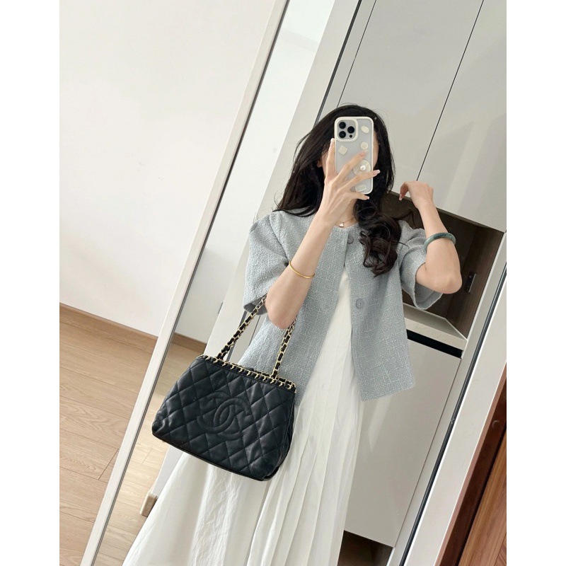 سترة قصيرة فضفاضة على الطراز الكوري بياقة دائرية وزرين سترة سلوب سترة بيضاء فستان من قطعتين من خشب البتولا