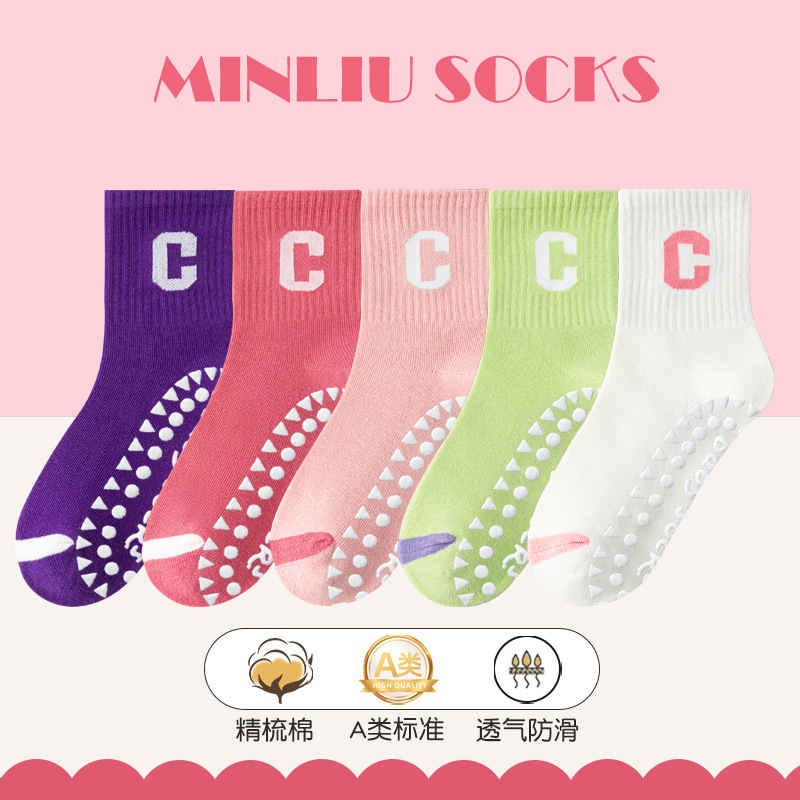 Minqi الخريف والشتاء الأطفال الجوارب الكلمة الاستغناء عن عدم الانزلاق الطفل الجوارب المتوسطة والكبيرة الأطفال إلكتروني الجوارب اليوغا الفتيات الترامبولين الجوارب