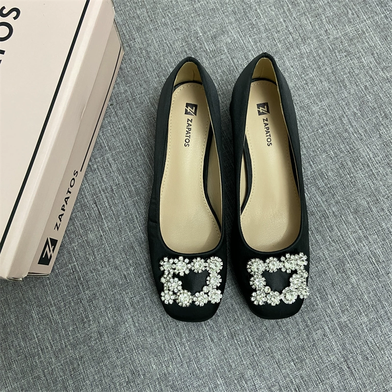 أحذية التجارة الخارجية كبيرة الحجم 424344 حجر الراين الفرنسي بإبزيم مربع حذاء فردي بكعب متوسط للنساء مع فم ضحل، مزاج مهذب، أحذية نسائية بكعب سميك