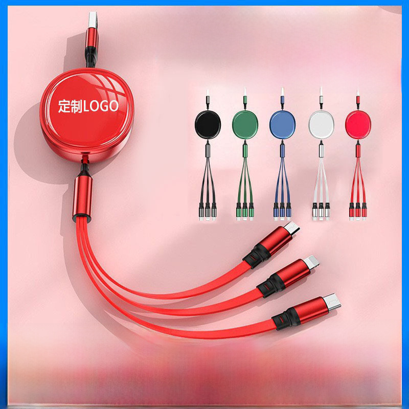 سبائك الألومنيوم الجديدة تلسكوبي سحب واحد ثلاثة خط بيانات شعار هدية فائقة السرعة شحن الهاتف المحمول خط شحن ثلاثة في واحد