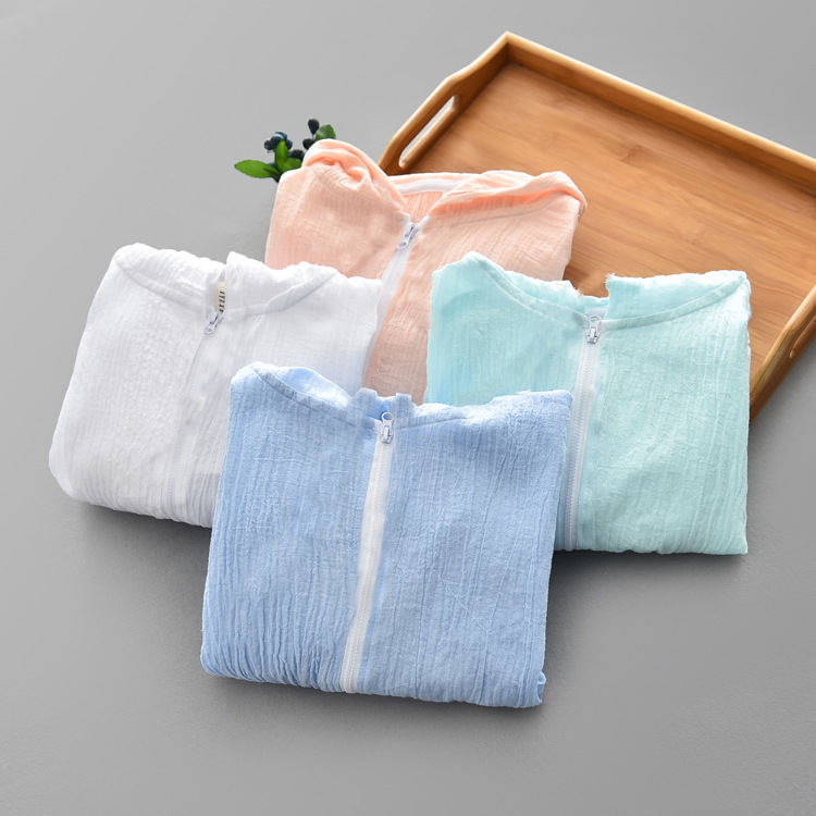 ملابس واقية من الشمس من القطن والكتان للأطفال، ملابس صيفية جديدة من الكريب لتكييف الهواء للرجال والنساء، سترة شاطئ خفيفة الوزن قابلة للتنفس