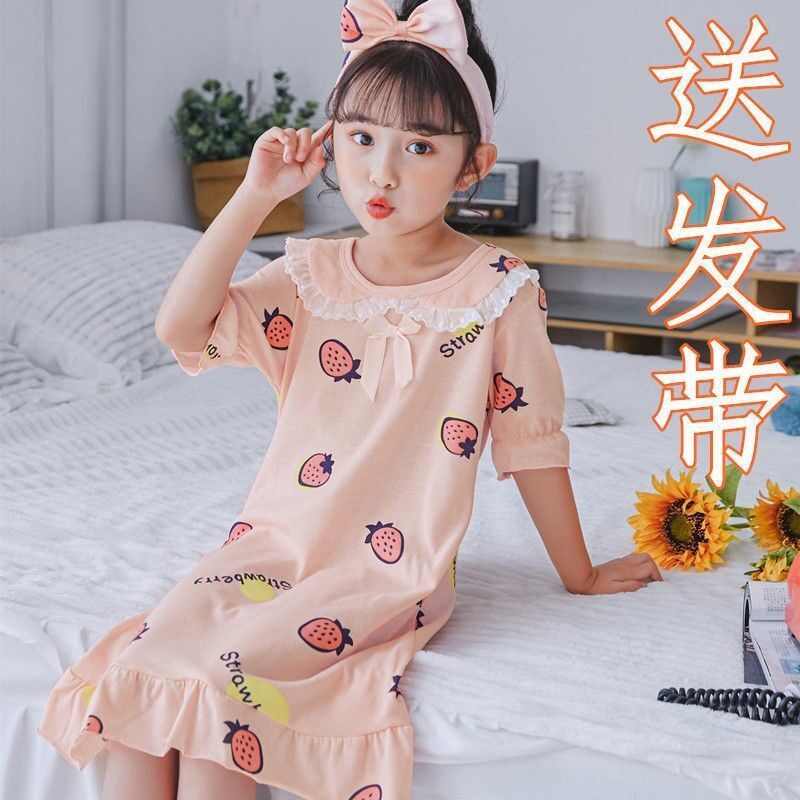 بيجامة نوم للفتيات بأكمام قصيرة للربيع والخريف والصيف للأطفال من القطن بلون سادة ورسوم كرتونية للأميرة المتوسطة والكبيرة للأطفال من الوالدين والطفل