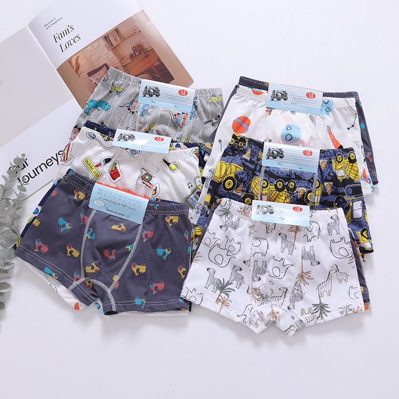 البضائع الأجنبية الملابس الداخلية للأطفال بالجملة في المخزون القطن الأولاد الملاكمين المطبوعة الكرتون الملاكمين السراويل ملخصات