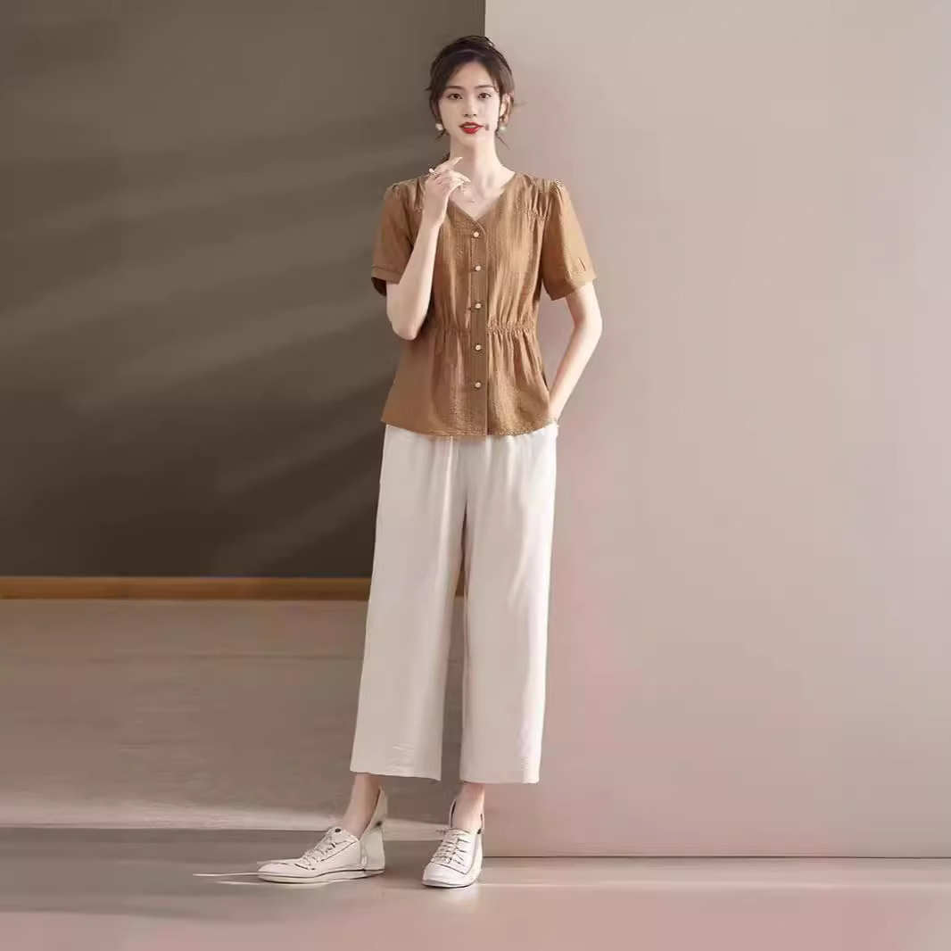 2024 الصيف السراويل العليا قطعتين مجموعة منتصف العمر وكبار السن المرأة تي شيرت بلون البطن تغطي حجم كبير دعوى الأم