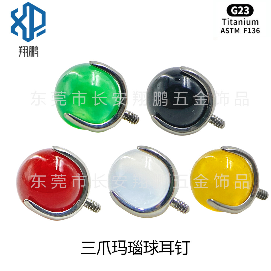 F-136 سبائك التيتانيوم ثلاثة مخلب العقيق الكرة أقراط G23 التيتانيوم جديد العقيق حجر حبة اللسان مسمار الشفاه مجوهرات أظافر رئيس
