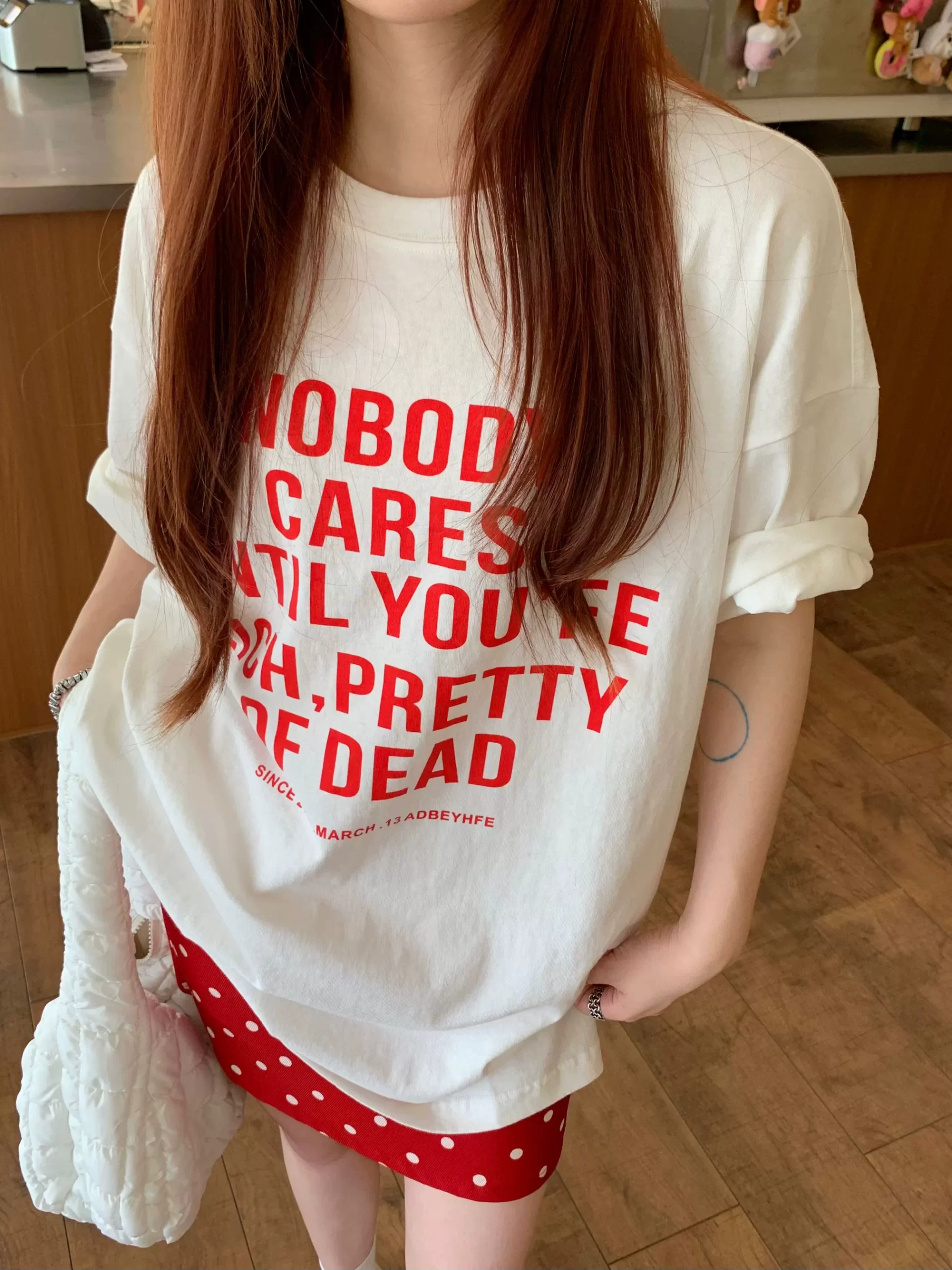 تيشيرت صيفي فضفاض مطبوع عليه حروف كسولة بأكمام قصيرة