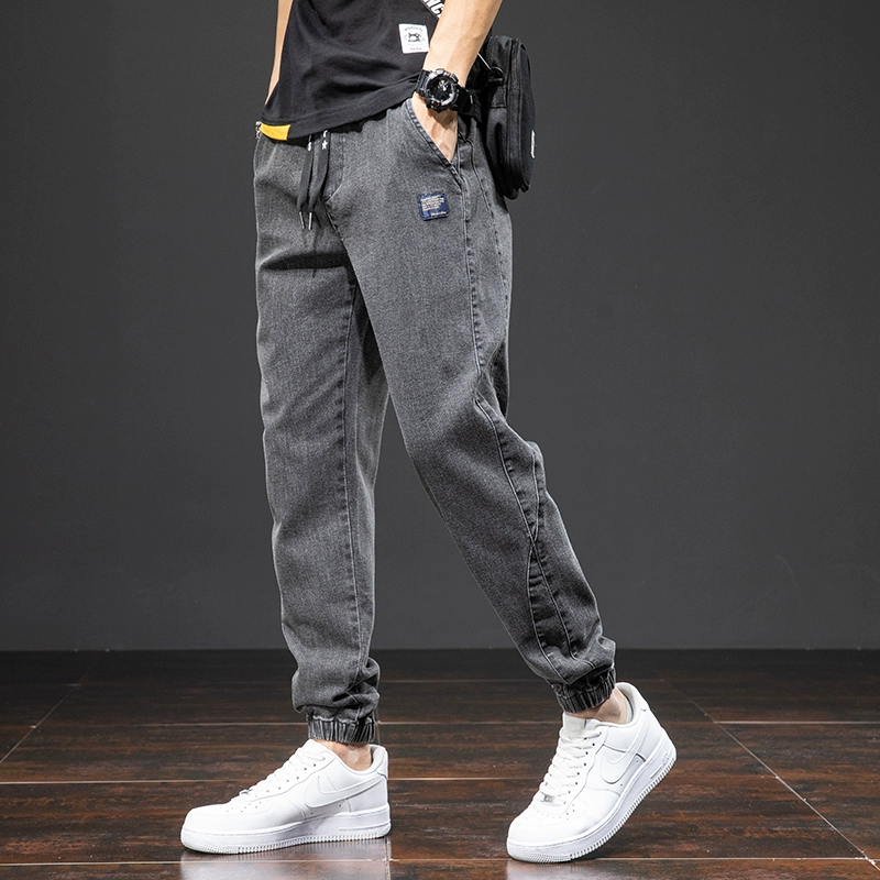 سراويل جينز أسود من البضائع الزرقاء رجال السراويل السراويل السراويل الفضفاضة