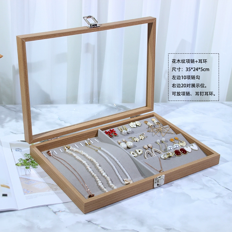 الأقراط والأقراط لتخزين صندوق المجوهرات الراقية والمجوهرات وقلادة صينية عرض الخاتم مع غطاء مقاوم للغبار بسعة كبيرة