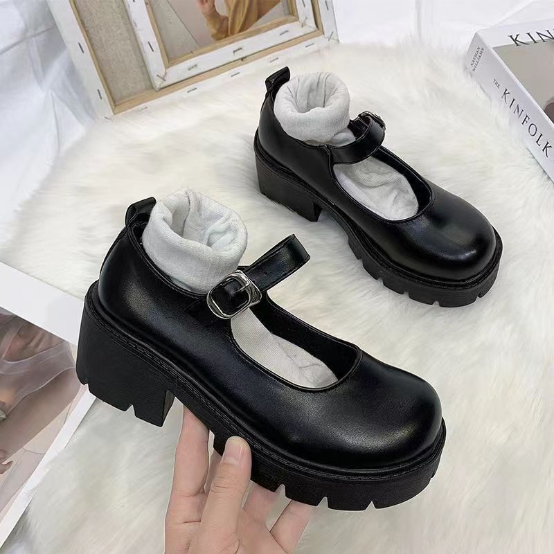أحذية ماري جين الجلدية الصغيرة عبر الحدود للنساء بنعل سميك لربيع وصيف 2024 أحذية JK متعددة الاستخدامات بكعب سميك وأحذية مسطحة