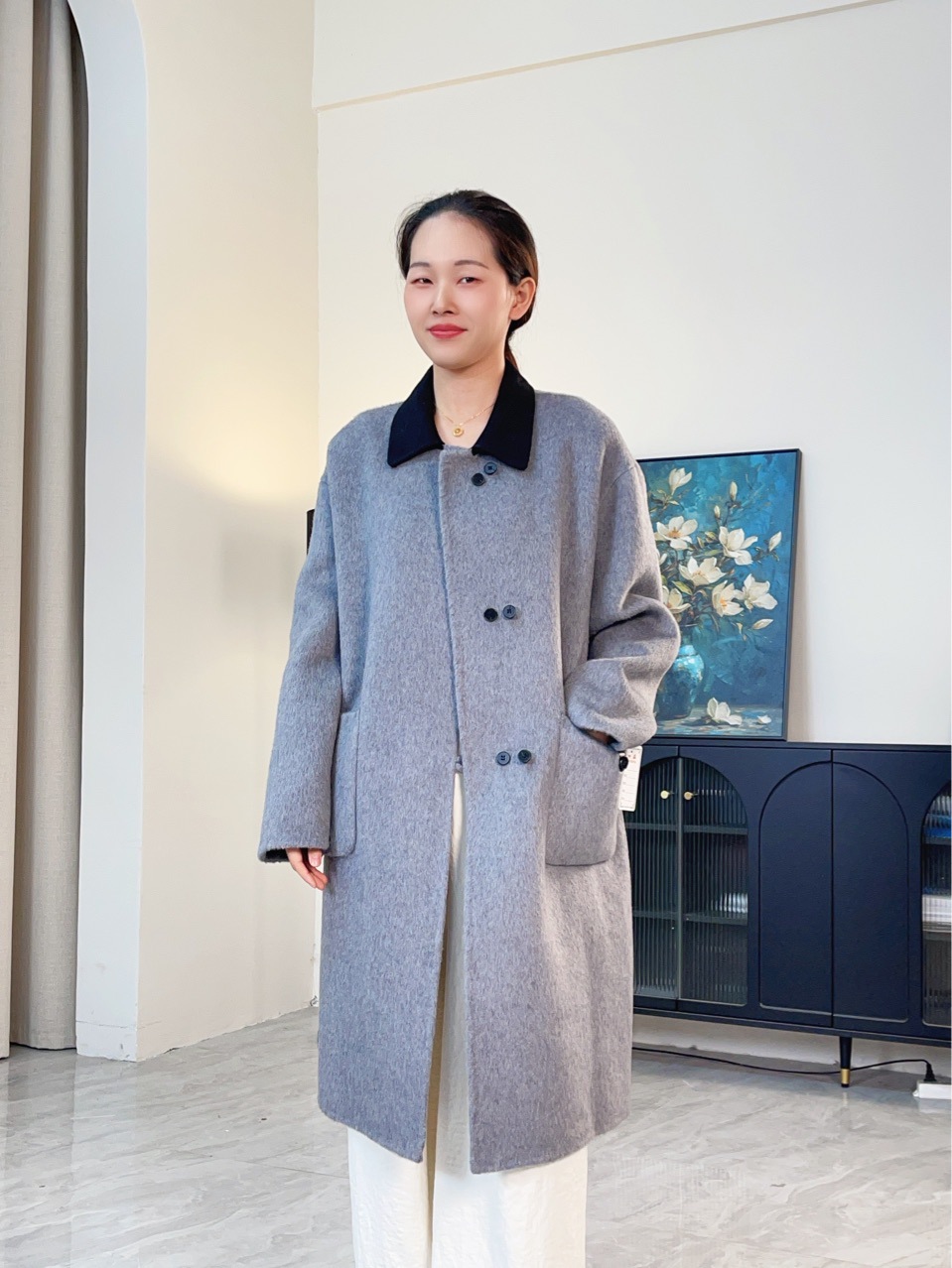 0611-192 معطف صوف مضاد للموسم سلع عالية سميكة طويلة من الصوف على الوجهين معطف صوف ملابس نسائية