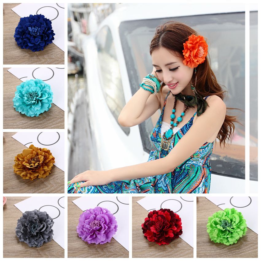 تنورة الشاطئ المتفجرة، غطاء الرأس، إكسسوارات قبعة القش، إكسسوارات الشعر للعروس والسفر والعطلات، مشبك دانتيل على شكل زهرة الفاوانيا