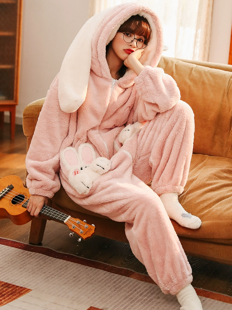 بيجامة مخملية مرجانية جديدة قطعة واحدة للخريف والشتاء للنساء في الشتاء سميكة ومخملية على الطراز الكوري مجموعة ملابس منزلية لطيفة من الفلانيل