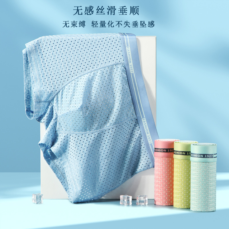 الملابس الداخلية للرجال الرجال شبكة الحرير الجليد حجم كبير الجرافين مضاد للجراثيم تنفس الملاكمين رقيقة الشباب سراويل بوكسر الرأس