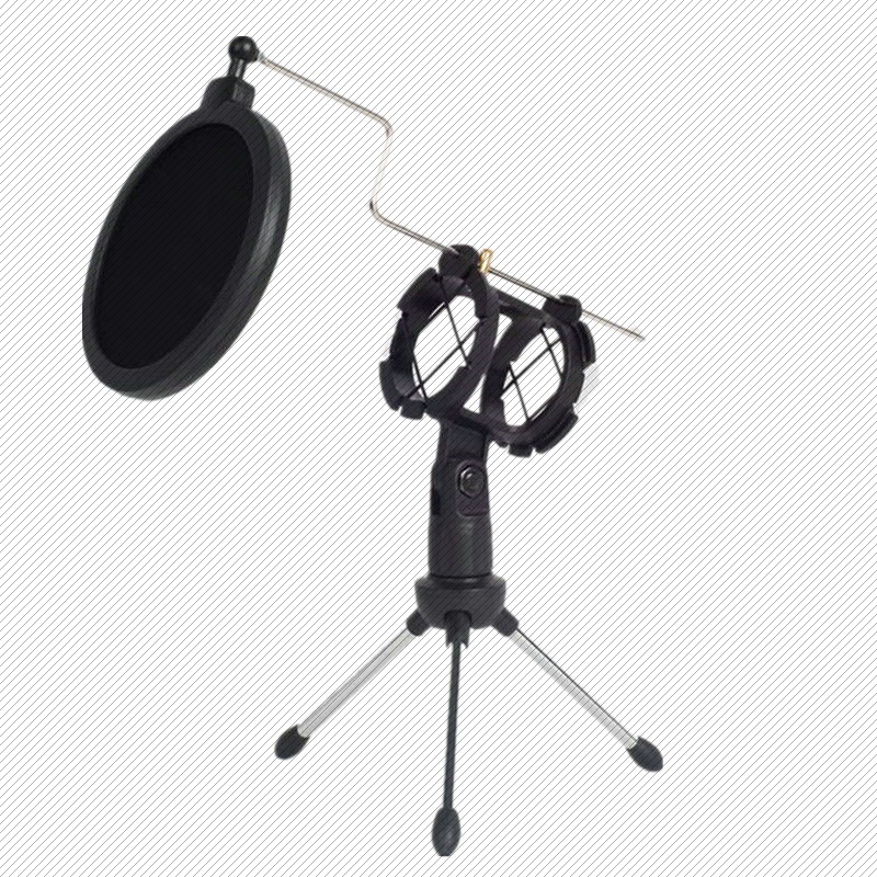 ميكروفون خاص حامل ثلاثي القوائم سطح المكتب غطاء مقاوم للبوب حامل ثلاثي القوائم مشبك ميكروفون كبير 4.3 سم للهاتف المحمول K حامل شريط الغناء