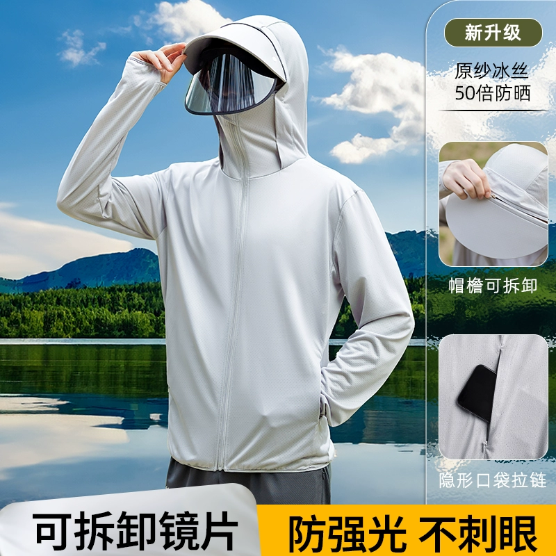 ملابس صيفية للرجال من الحرير الجليدي تسمح بمرور الهواء للصيد في الهواء الطلق للحماية من الشمس